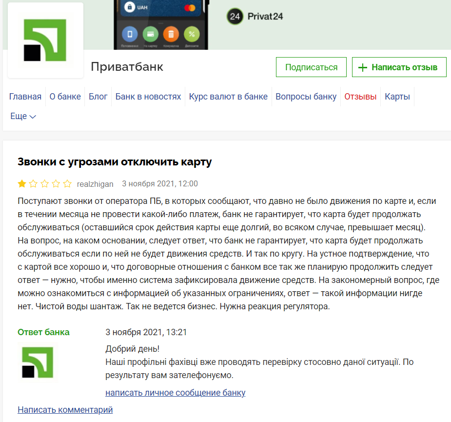 "На закономерный вопрос, где можно ознакомиться с информацией об указанных ограничениях, ответ: такой информации нигде нет. Чистой воды шантаж. Так не ведется бизнес. Нужна реакция регулятора", - написал один из недовольных клиентов Приватбанка.