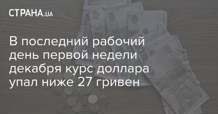 В последний рабочий день первой недели декабря курс доллара упал ниже 27 гривен