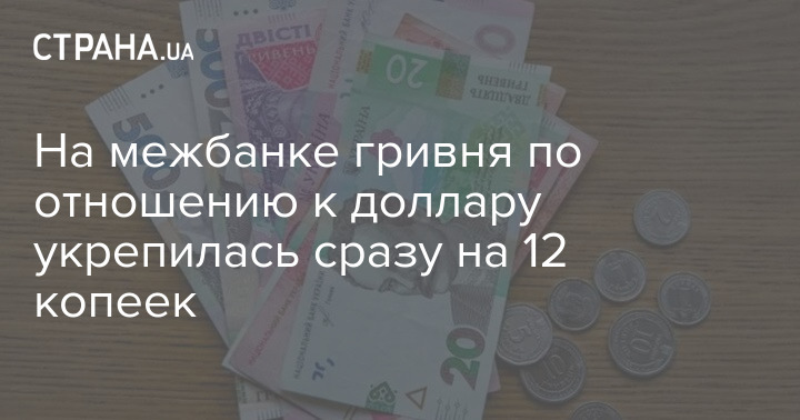 На межбанке гривня по отношению к доллару укрепилась сразу на 12 копеек