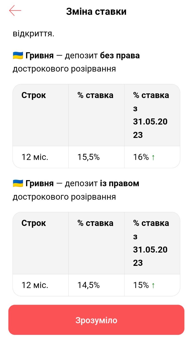 Интересно, что на днях банки еще повышали свои депозитные ставки, в том числе и по вкладам с правом досрочного расторжения. Например, у monobank (работает по лицензии Универсалбанка) они выросли с 14,5% до 15% годовых.