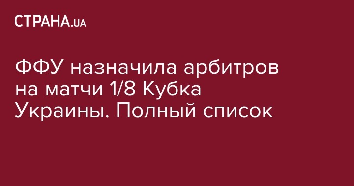 Комитет арбитров Федерации футбола Украины назначил официальных лиц на матчи 1/8 финала розыгрыша Кубка Украины по футболу сезона 2017/2018 годов, передает официальный сайт Федерации футбола.