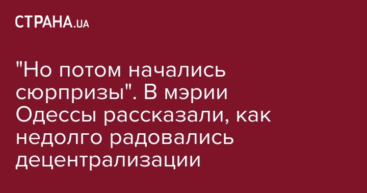 "Но потом начались сюрпризы". В мэрии Одессы рассказали, как недолго радовались децентрализации