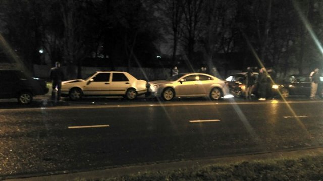 В понедельник вечером, 23 октября, во Львове на улице Липинского произошло массовое ДТП, которое спровоцировал пьяный водитель на Volkswagen Passat. В аварию попали 5 автомобилей.