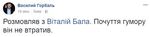 11:37  Раненый в печень политолог Виталий Бала уже разговаривает после операции. Об этом в Facebook написал его друг Василий Горбаль.