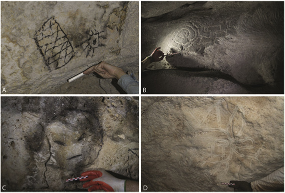 Подавляющее большинство наскальных надписей их авторы делали, просто проводя ладонями и пальцами по мягкой поверхности стен. Ученые считают, что замысловатые геометрические фигуры и формы, часто перетекающие друг в друга геометрические и антропоморфные изображения могут говорить об употреблении их авторами галлюциногенных веществ.