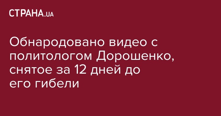 Как сообщала "Страна", появилось последнее видео с погибшим политологом Дорошенко. В понедельник, 25 апреля, полиция квалифицировала смерть политолога как умышленное убийство