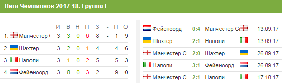 Шахтер - Фейеноорд. Положение в группе F перед четвертым туром.