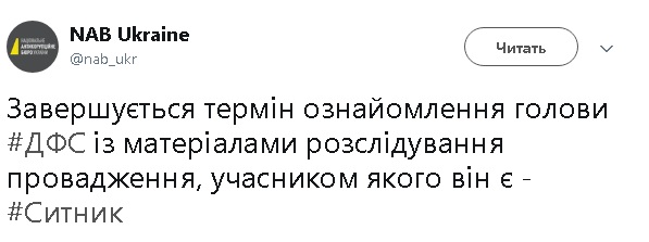 "Завершается срок ознакомления главы ГФС (Романа Насирова, - ред.) с материалами расследования производства, участником которого он является", - отметил Сытник.
