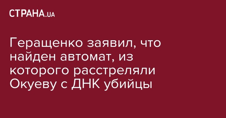 Геращенко заявил, что найден автомат, из которого расстреляли Окуеву с ДНК убийцы