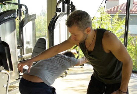 Белокурый тренер прорабатывает каждую мышцу Фото: Стоп-кадр видео на YouTube