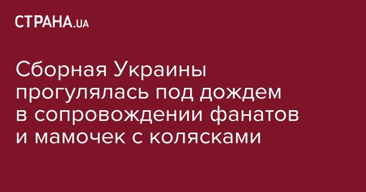 Сборная Украины прогулялась под дождем в сопровождении фанатов и мамочек с колясками