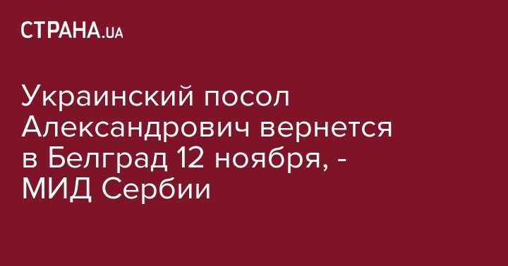 Он также уточнил, что Александрович возвращается в Белград 12 ноября, после чего будет рассмотрено возвращение сербского посла в Киев. По словам главы МИД Сербии, его страна хочет поддерживать с Украиной хорошие отношения, "в которых произошли определенные помехи".