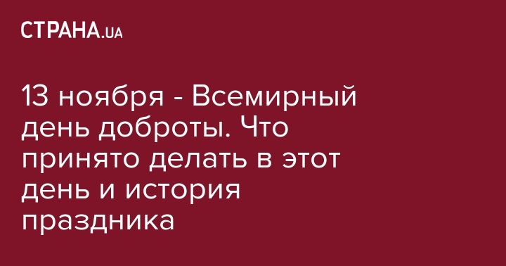 Сегодня, 13 ноября, люди всего мира отмечают День доброты (World Kindness Day). Каждый хочет, чтобы в его жизни присутствовало добро, чтобы рядом были отзывчивые люди. Однако народная мудрость гласит, что нельзя получить добро, не давая его другим. Об этом сообщает Calend.