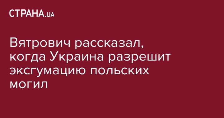 Директор Украинского института нацпамяти, историк Владимир Вятрович рассказал об условиях, при которых Украина сможет разрешить эксгумацию останков польских жертв военных конфликтов. Об этом он сообщил в эфире ТСН.