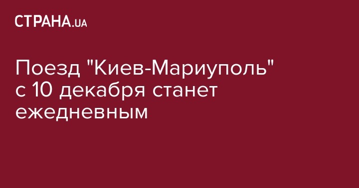 "Укрзализныця" с 10 декабря переводит на ежедневный режим движения поезд №103/104 Киев - Мариуполь. Об этом сообщил и. о. главы правления "Укрзализныци" Евгений Кравцов на своей странице в Twitter.