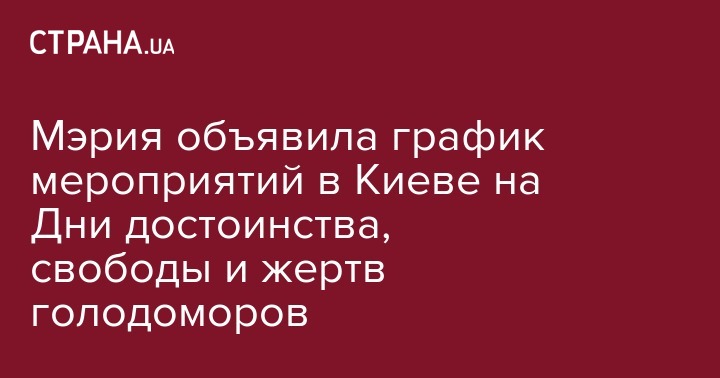 В Киеве следующая неделя будет насыщена разными мероприятиями в связи сразу с двумя памятными датами. Так, 17-24 ноября пройдут мероприятия ко Дню достоинства и свободы, а 25-26 ноября – ко Дню памяти жертв голодоморов. Об этом сообщает пресс-служба КГГА.