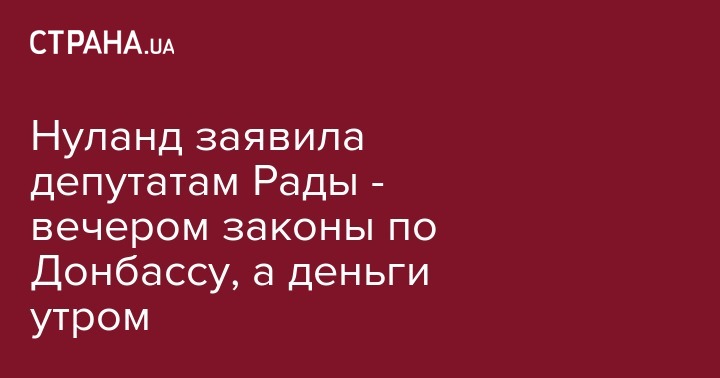 Нуланд заявила депутатам Рады - вечером законы по Донбассу, а деньги утром