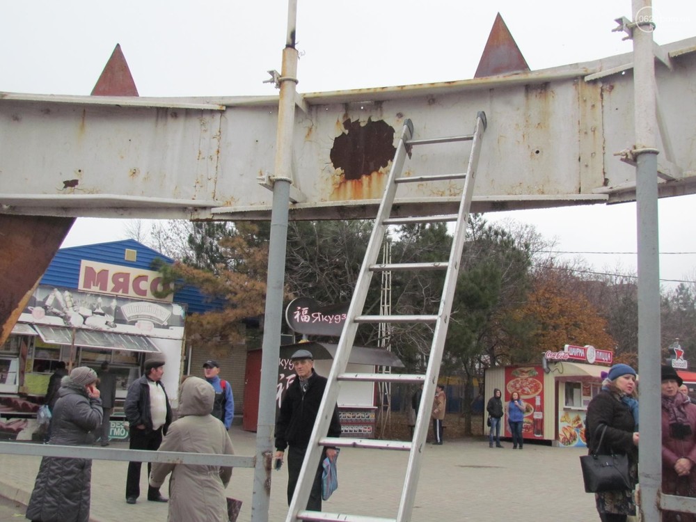 "Металлические конструкции прогнили, памятник может упасть в любой момент и представляет опасность для окружающих. Поэтому было принято решение его демонтировать", - сообщил Очеретин и заверил протестующих, что новый памятник будет установлен в течение полугода, при этом вся символика прежнего будет сохранена.