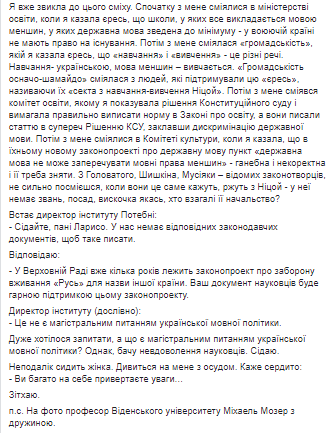 На это Ларисе Ницой ответили, что нет соответствующих законодательных документов, и что это не является магистральным вопросом украинской языковой политики.