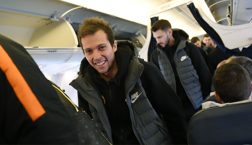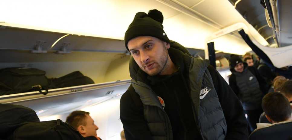 Официальный Twitter "Шахтера" опубликовал фото команды с борта авиалайнера перед вылетом из Борисполя.