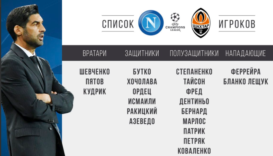 "Если вы думаете, что мы приехали сюда обороняться, то вы ошибаетесь. Если какое-то время в матче нам придется играть без мяча, это будет лишь говорить о качестве нашего соперника, а не о том, что мы боимся, или не будем играть на победу. Я всегда готов открыть дверь в плей-офф Лиги чемпионов. Мы всегда готовы к хорошим моментам, и не готовы к плохим. "Шахтёр" будет демонстрировать свою игру и не собирается прятаться от "Наполи", - заявил Фонсека.