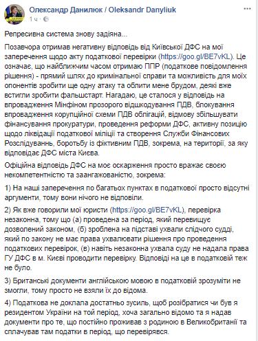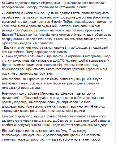 Также Данилюк утверждает, что налоговая не приложила достаточно усилий, чтобы разобраться, был ли он резидентом Украины проверяемый период. Он уточнил, что постоянно проживал с семьей в Великобритании и платил там налоги.
