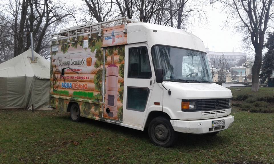 На территории Мариинского парка в правительственном квартале появилась баня на колесах. Об этом сообщают пользователи Facebook в группе "Печерский район".