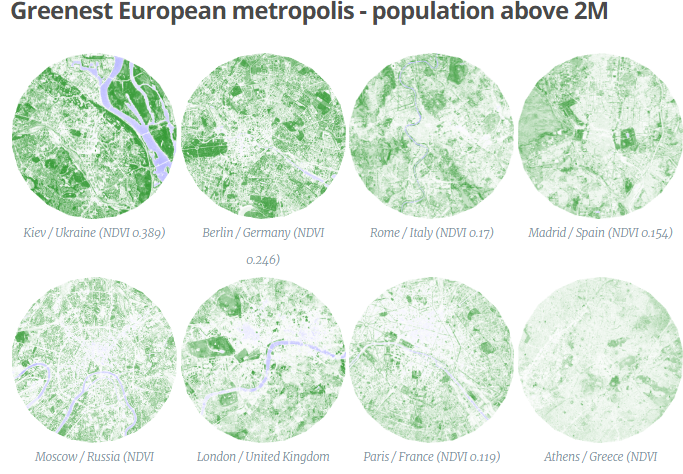 Городской и лесной исследователь Phillipp Garther составил список самых "зеленых" городов Европы, в котором Киев занял первое место среди мегаполисов с населением более 2 миллионов человек. Об этом говорят результаты исследования.