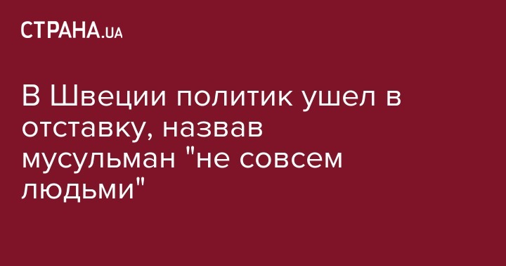 В Швеции политик ушел в отставку, назвав мусульман "не совсем людьми"