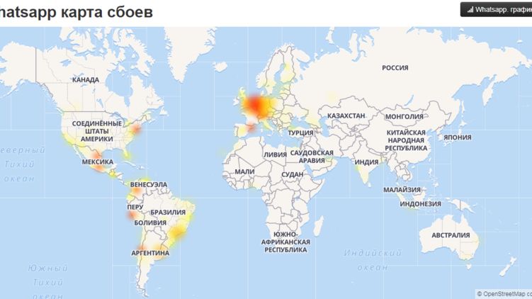 карта сбоев WhatsApp, фото:newsru.co.il/