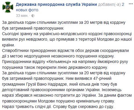 Молдавская сторона задержала Надирадзе на 72 часа и возбудила уголовное дело за попытку нарушения государственной границы.