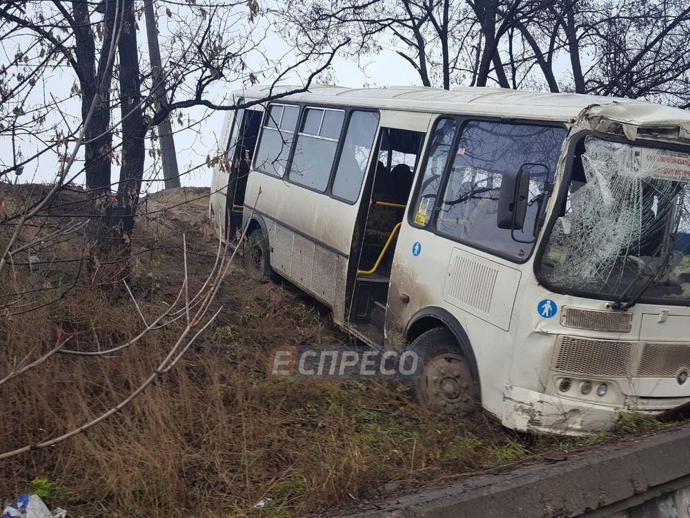 В Киеве пассажирский автобус слетел с трассы, ударившись об отбойник