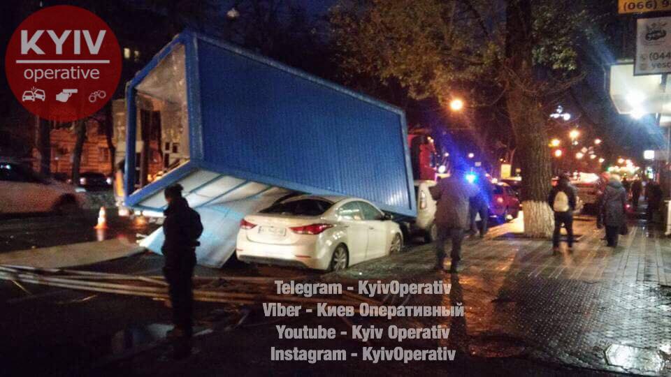 На Подоле незакрепленный МАФ упал с грузовика на припаркованный автомобиль Hyundai.