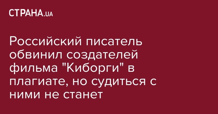 Российский фотограф и писатель Сергей Лойко, автор известной книги "Аэропорт" об обороне Донецкого аэропорта украинскими бойцами 2014-2015 годов, в интервью каналу "Прямой" обвинил авторов украинского фильма "Киборги" в плагиате, но сообщил, что не будет судиться с ними.