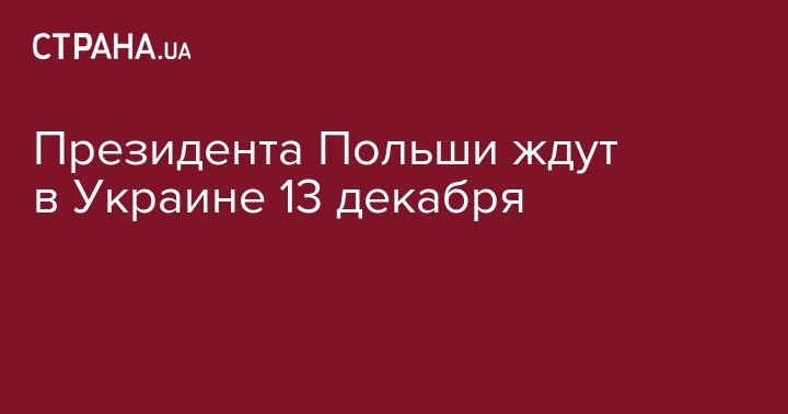 Президент Польши Анджей Дуда посетит Украину в среду, 13 декабря, сообщается на официальном сайте главы польского государства.