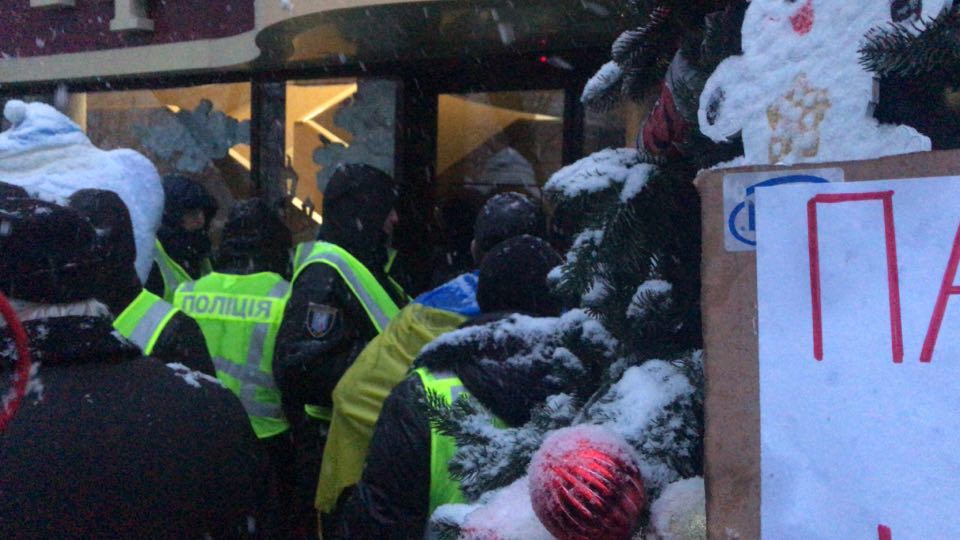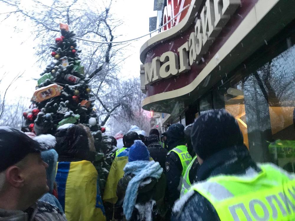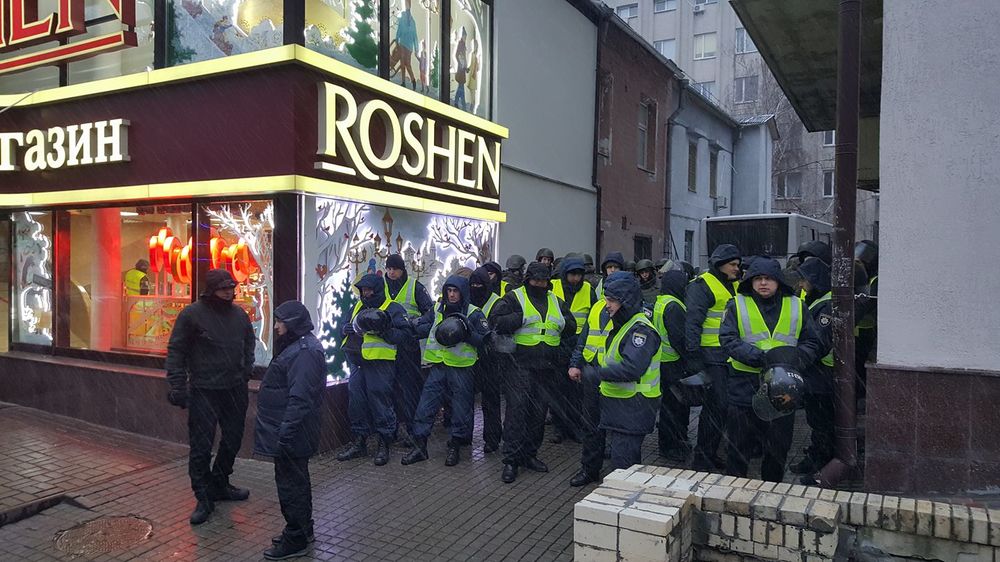 • Во время митинга на Аскольдовом переулке, где держат Михо, на некоторое время был заблокирован магазин "Рошен" с покупателями и персоналом.