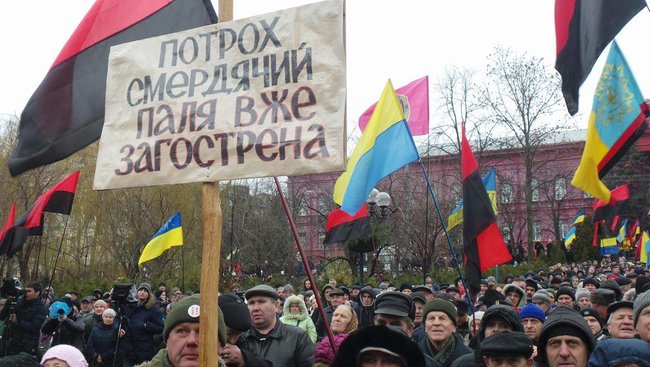 14:39  "При Порошенко расцвела и укрепилась коррупция. Это можно решить только устранением от власти Порошенко. Он создал мафиозные группировки в правоохранительной системе", - говорит со сцены диссидент Степан Хмара.