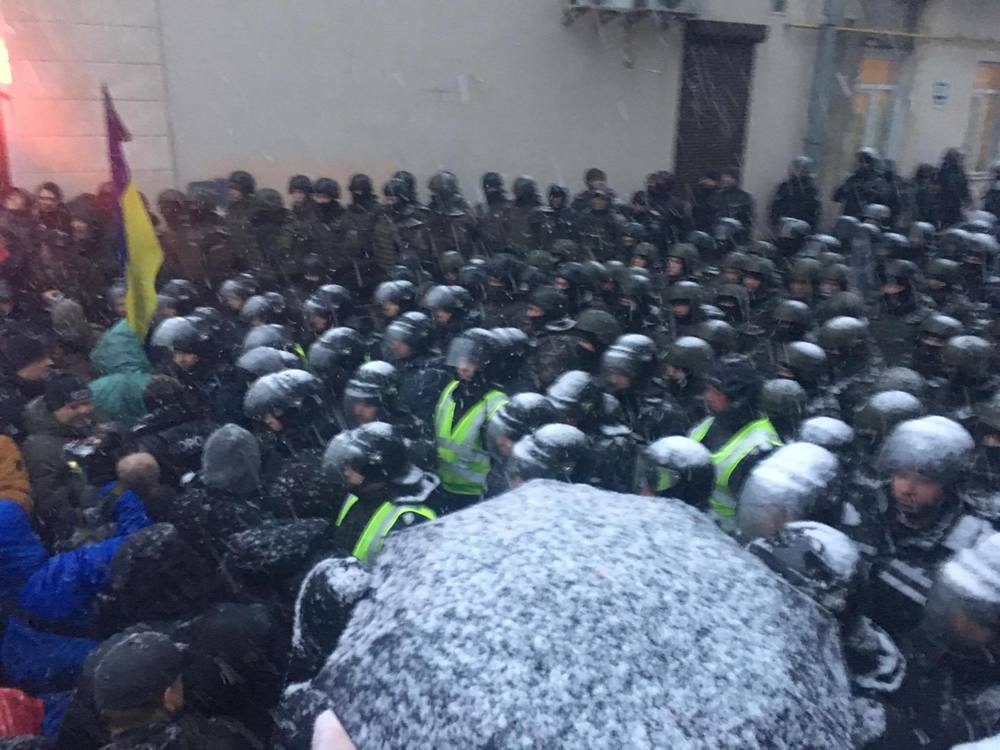 15:10  На Аскольдовом переулке, где находится изолятор СБУ, уже ждут Михо-активистов. Охраняя заодно и магазин "Рошен".