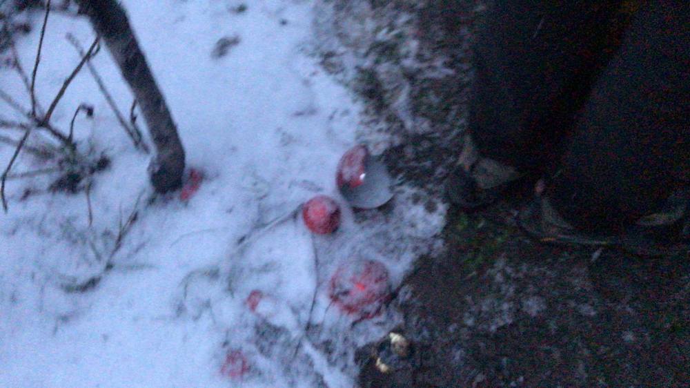 15:53  У магазина "Рошен" остались побитые елочные игрушки.