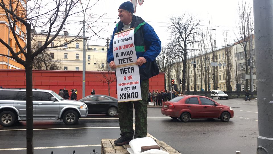 16:25  "Генпрокурор - не юрист, он бомж и алкоголик!", - кричит один из митингующих.