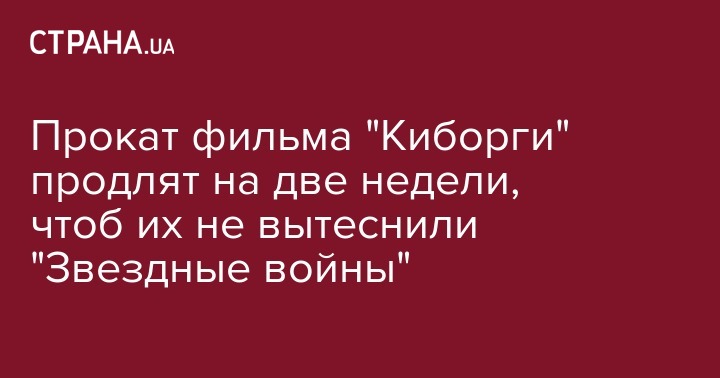 Глава профильного комитета по вопросам свободы слова и информационной политики Виктория Сюмар (фракция "Народный фронт") сообщила, что достигнута договоренность с кинотеатрами продолжить прокат украинского фильма "Киборги" для того, чтобы их не вытеснили из проката кассовые "Звездные войны".