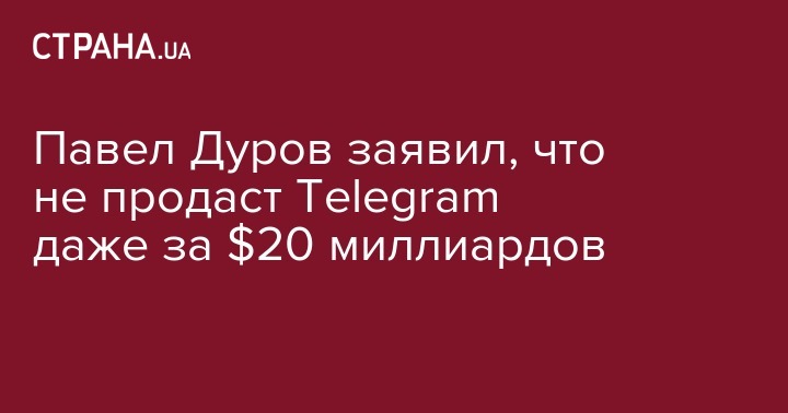 Создатель мессенджера Telegram заявил, что не продаст свой бизнес ни за какие деньги. Об этом сообщает "Интерфакс".