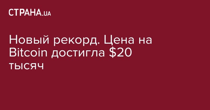 Новый рекорд. Цена на Bitcoin достигла $20 тысяч
