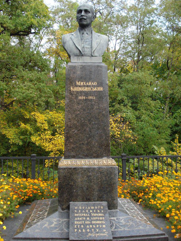Могила Коцюбинского находится на Болдиной горе Чернигова. Бюст писателя на прямоугольном постаменте был установлен в 1955 году. По словам директора Черниговского литературно-мемориального музея-заповедника Михаила Коцюбинского Игоря Коцюбинского, оно весит более 100 килограммов и изготовлена ​​из бронзы.
