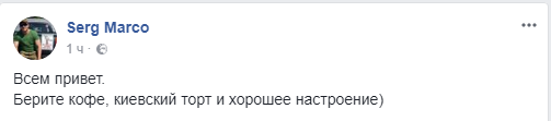 Там же отметился Серж Марко: "Всем привет. Берите кофе, киевский торт и хорошее настроение)".
