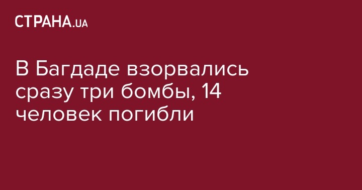 В столице Ирака Багдаде 2 мая взорвались сразу три бомбы. В результате погибли 14 человек, включая мусульман-шиитов. Ещё 26 людей получили ранения, сообщает Reuters со ссылкой на местную полицию и медиков.