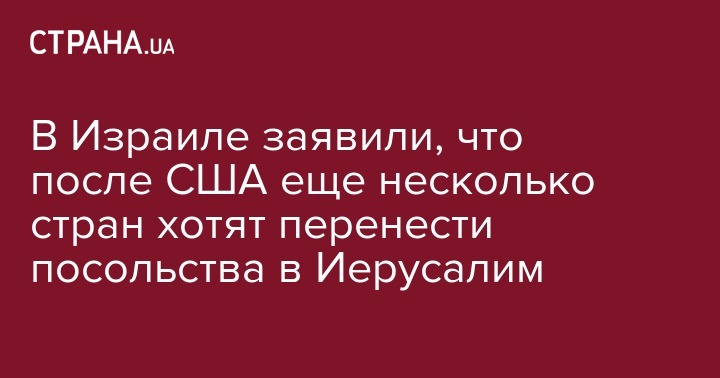 В Израиле заявили, что после США еще несколько стран хотят перенести посольства в Иерусалим