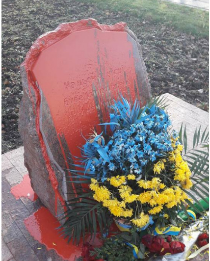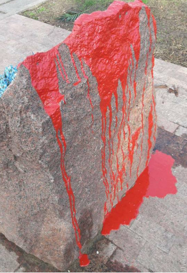 В центре Одессы неизвестные облили красной краской памятный знак погибшим участникам АТО.