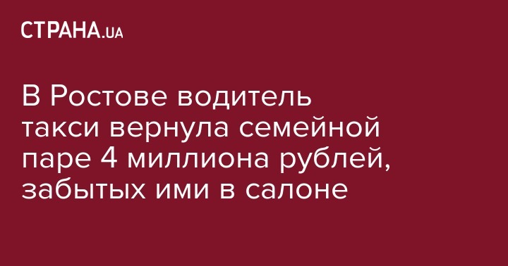 В Ростове-на-Дону таксистка Оксана Милованова вернула семейной паре забытые ими в такси 4 миллиона рублей. Для этого женщине пришлось догонять автобус, передает "Российская газета".