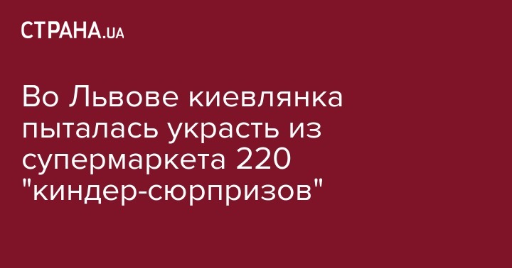 Во Львове 33-летняя жительница Киева пыталась украсть из гипермаркета 220 детских шоколадных сладостей "киндер-сюрприз". Кража не удалась и она была задержана полицией.